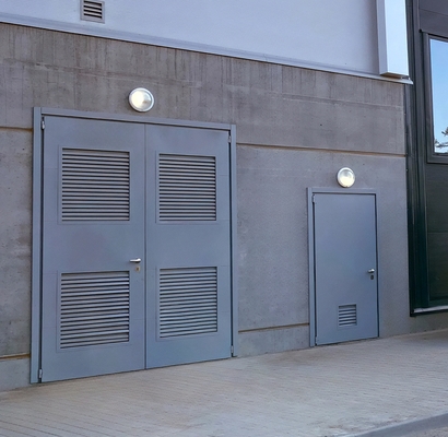 Ворота распашные (3,0 мм+1,4 мм рекомендовано при размерах более 3*3 м) противопожарные Ei60 / технические двупольные равнопольные: короб закрытого типа усиленный из сложно гнутого профиля из стали З мм, с / без порога, короб угловой с наличником по 50 мм / торцевой / разборный (при необходимости делаем по умолчанию). Полотна коробчатого типа (типа «СЭНДВИЧ») из стали 1,4 мм с наполнением базальтовой плитой 60-80 мм и усилением по периметру профилем, петли капли 160*25 мм по З шт. на полотно. Замок «Страж» с черной ручкой на планке на рабочей створке, не рабочая створка на шпингалетах (при необходимости ставим гаражные задвижки по умолчанию). Уплотнение по периметру (Е+Д), термолента (если Ei60). Ral стандарт шагрень, открывание только наружу.